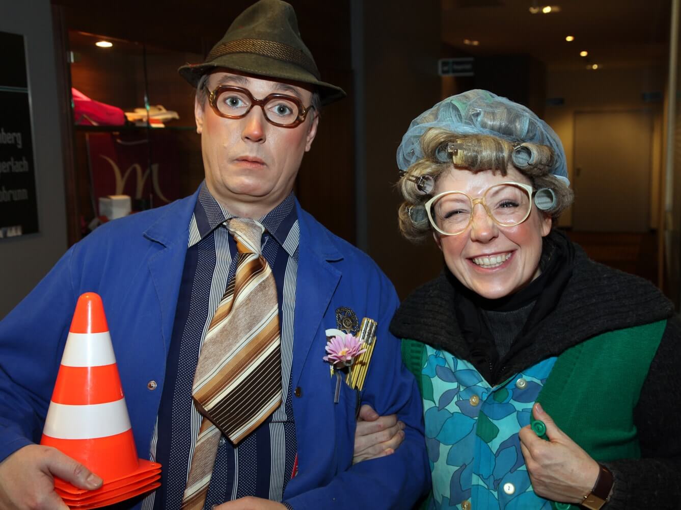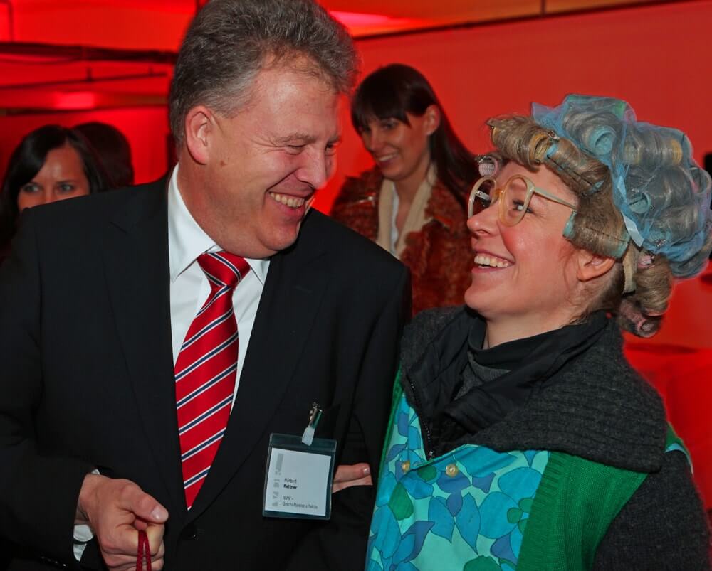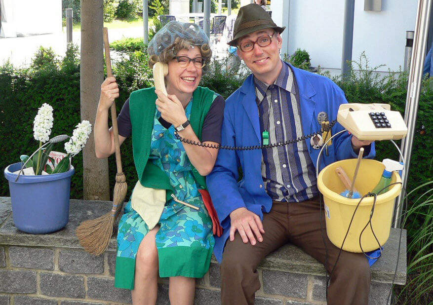 Bei Firmenumbauten, Neubauten oder Eröffnungen sorgt das schlagfertige Hausmeister-Duo schon bei der Begrüßung der Gäste