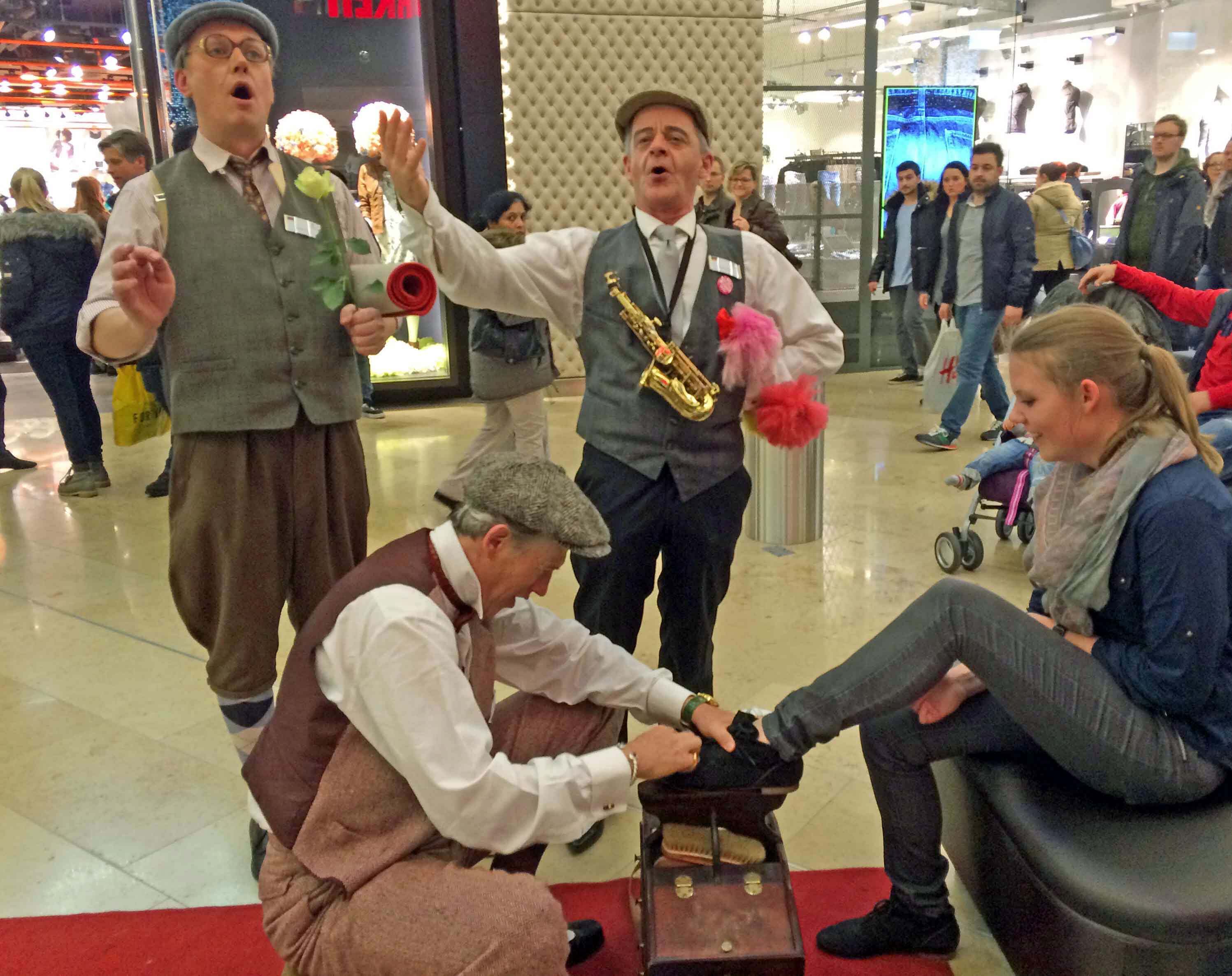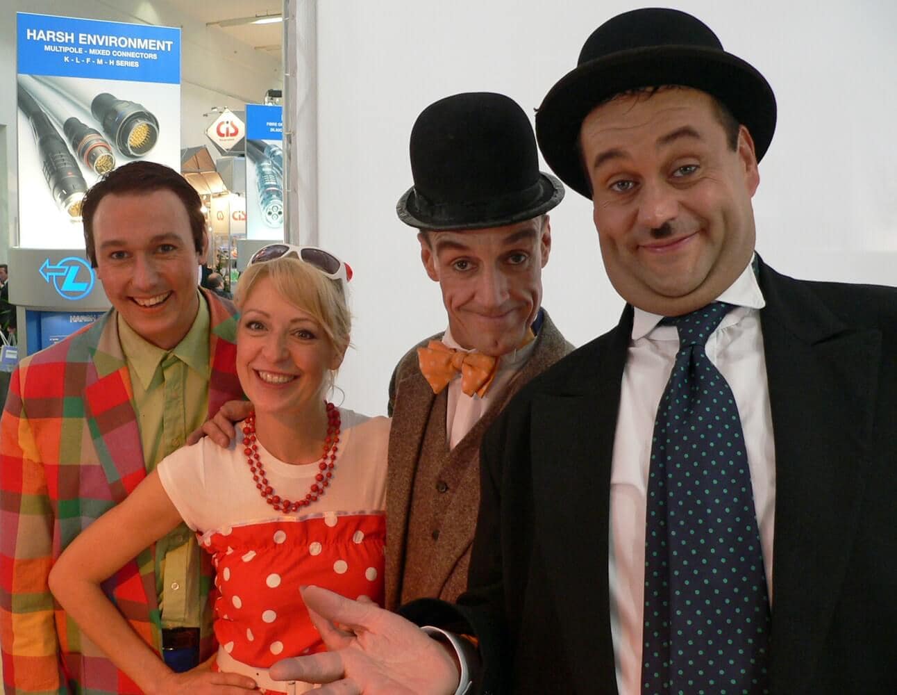 Unterhaltung am MessestandDie Unterhaltungskünstler wirken wie ein Magnet und ziehen die Aufmerksamkeit der Besucher auf sich. Mit langjähriger Erfahrung als Messekünstler gelingt es ihnen, gezielt Interesse zu wecken und den Messestand in den Mittelpunkt zu stellen.