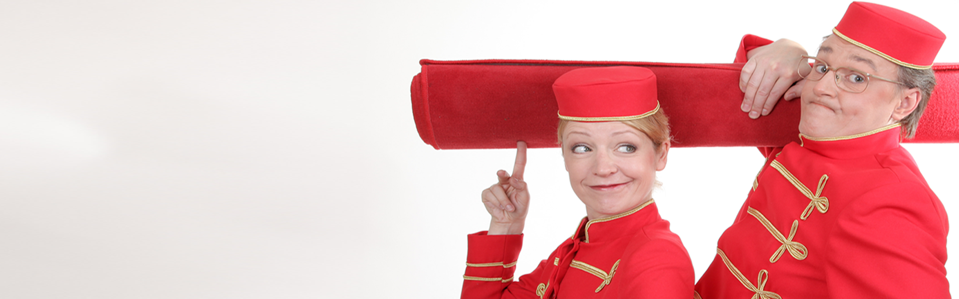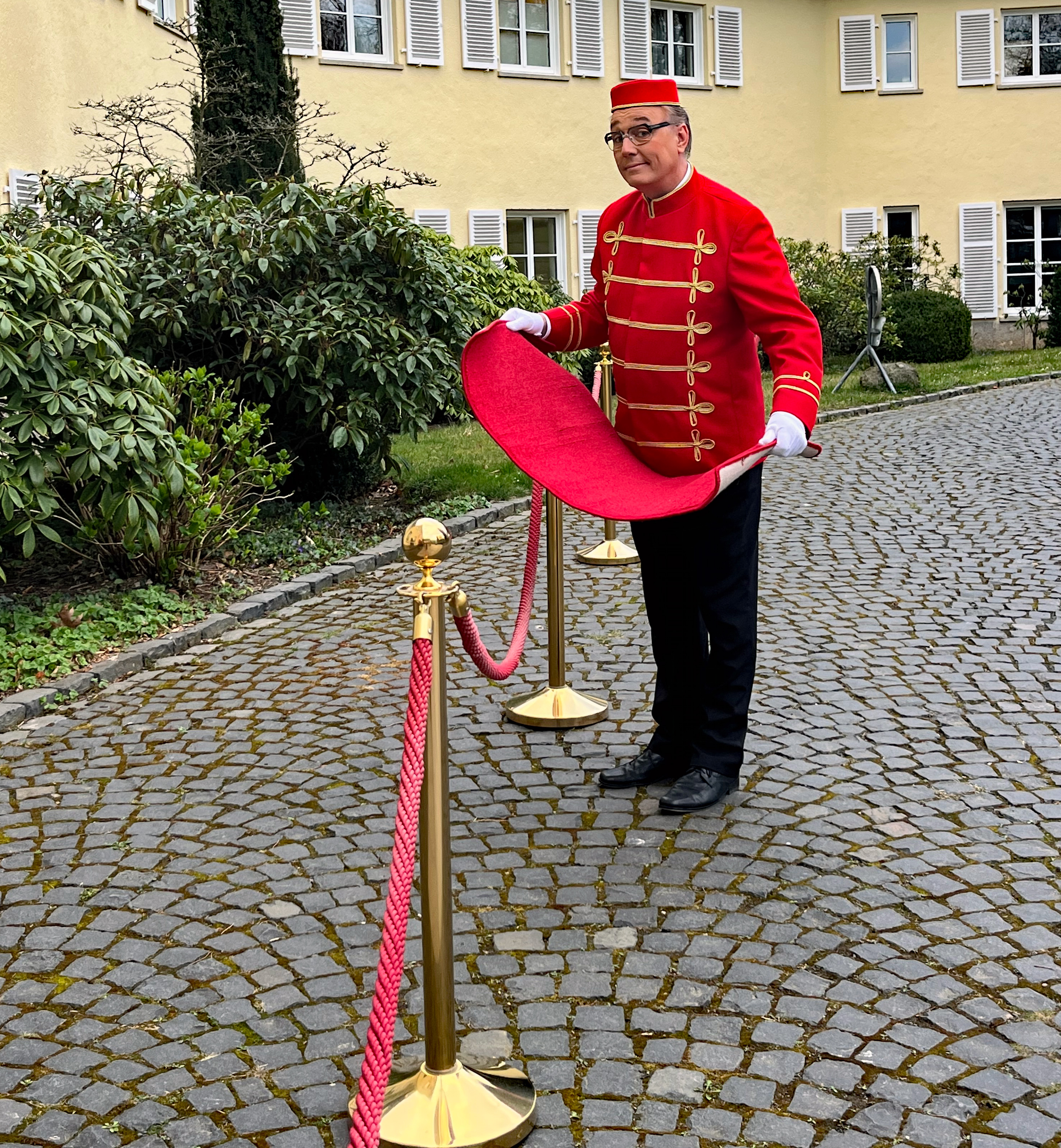 Welcome-Pagen – ein stimmungsvoller Beginn - Zum Empfang der Gäste und für einen festlichen Start eignet sich dieser Showact hervorragend. Ob im Hotel oder Restaurant – die Welcome-Pagen sorgen mit Charme und Humor dafür, dass jede Feier mit einem Lächeln beginnt. Herzlich begrüßen die Künstler die Besucher, geleiten sie als „VIPs“ über den roten Teppich und schaffen so von Anfang an eine besondere Atmosphäre. Dieser Unterhaltungsact lässt sich ideal mit weiteren Showbeiträgen kombinieren: Nach dem Empfang sorgen beispielsweise Spaßkellner für zusätzliche Überraschungen und Unterhaltung. Die Welcome-Pagen bieten Unterhaltung für den ganzen Abend und machen jede Gala oder Feier zu einer Veranstaltung mit besonderem VIP-Charakter.